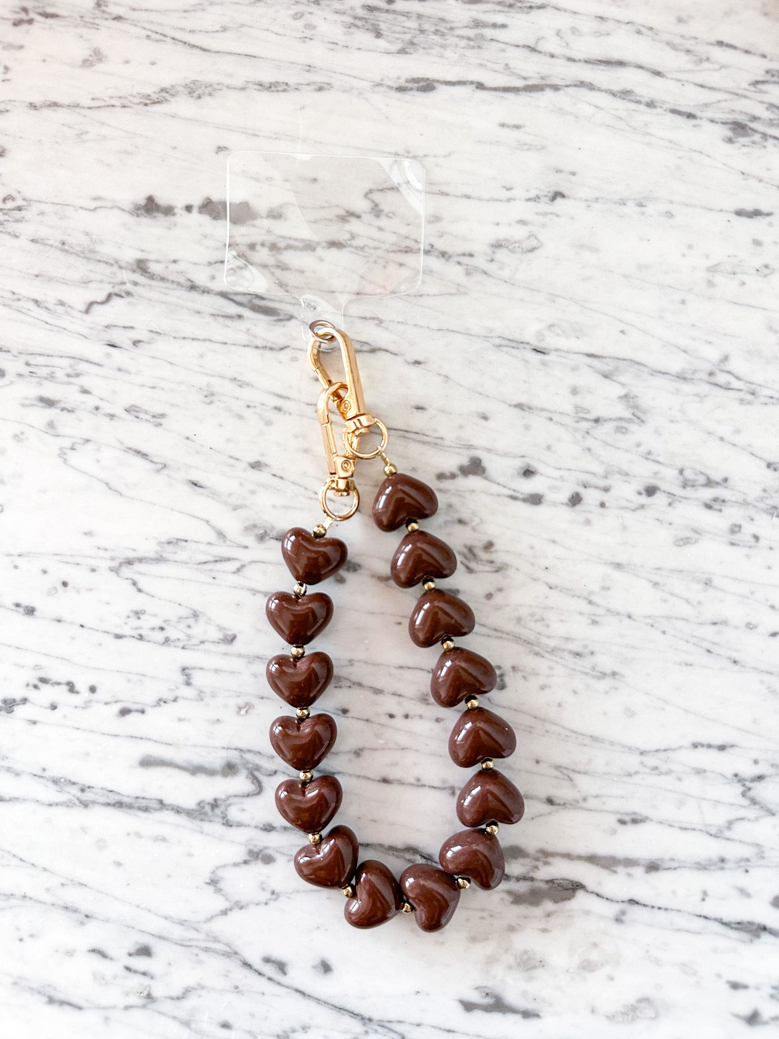 Telefoonkoord met hartjes bruin