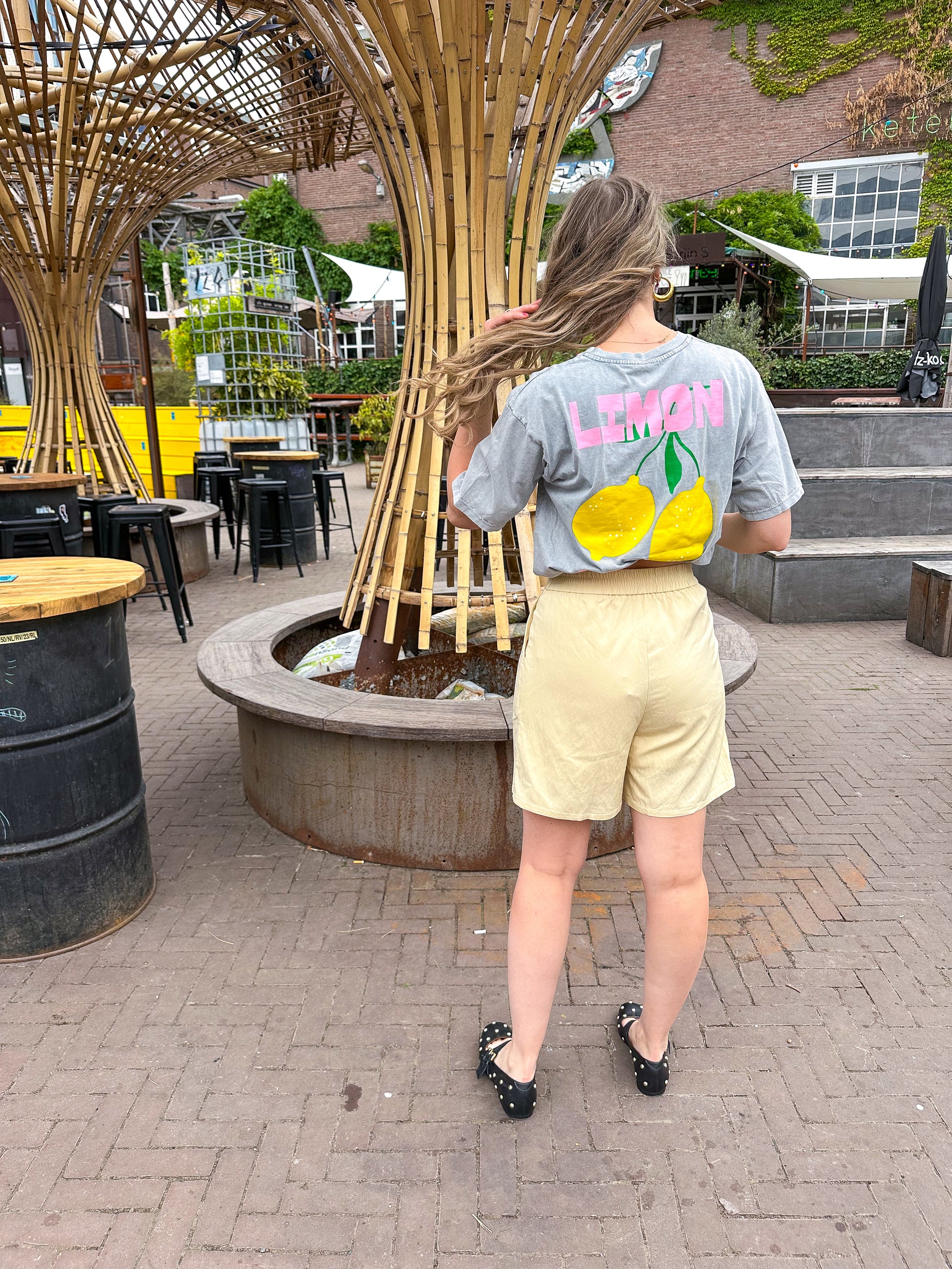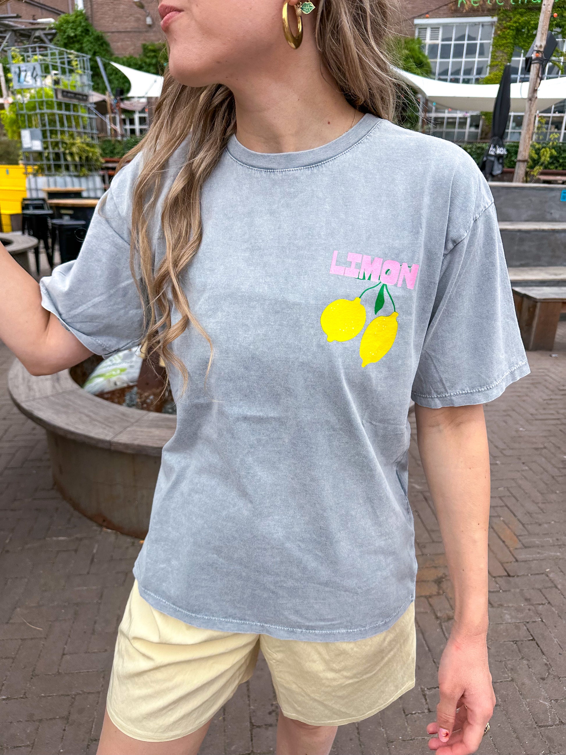 Grafische t-shirts zijn helemaal on trend en wij begrijpen wel waarom. Dit zomerse t-shirt met lemon opdruk is eindeloos te combineren voor leuke zomerse outfits. De grijze kleur geeft een stoere uitstraling.