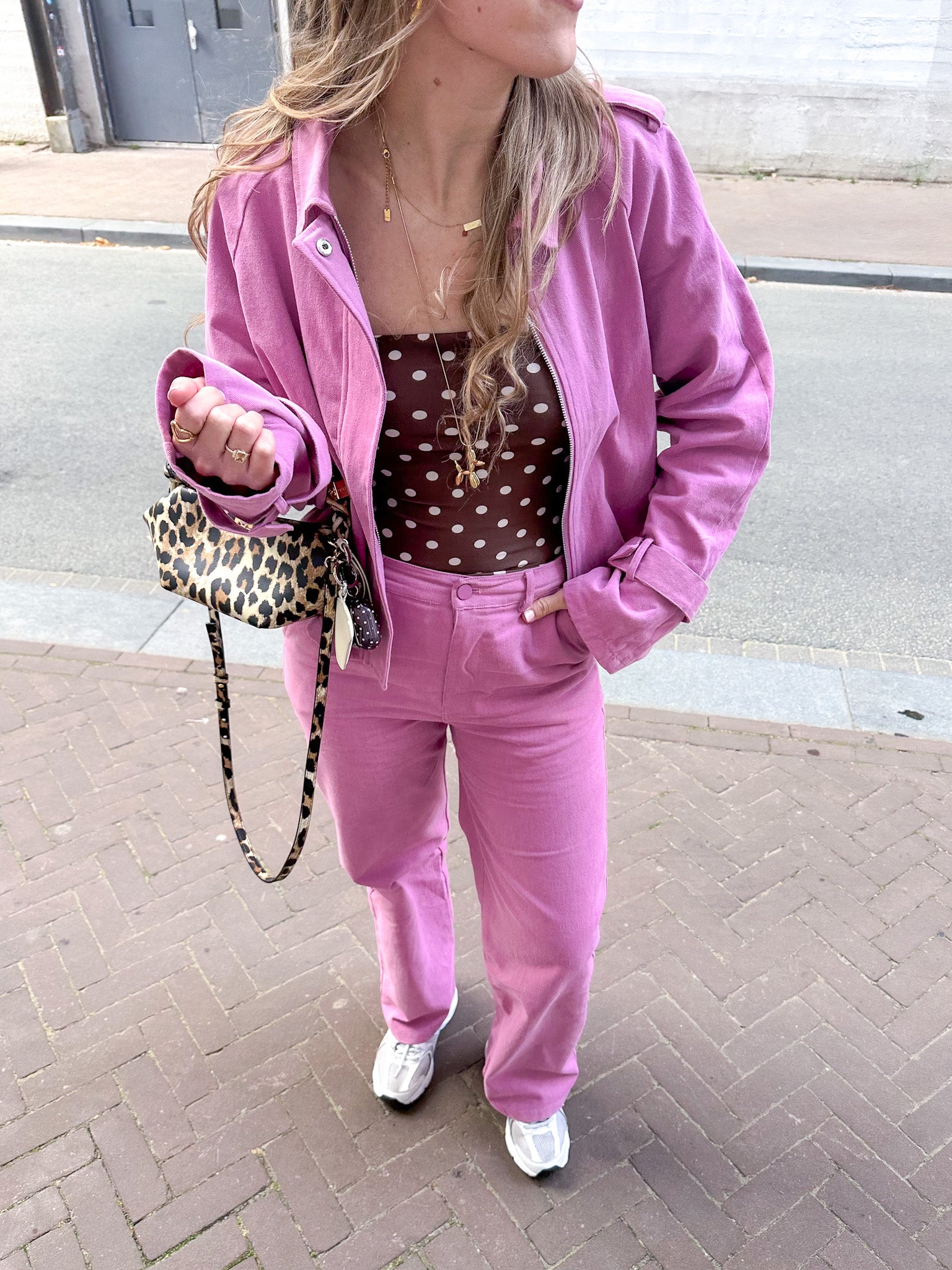 Dit denim jasje is dankzij de roze kleur, jouw nieuwe favoriete item voor dit najaar. Gebruik als tussenjas tijdens de kouder wordende dagen, maar ook nog perfect als jasje te dragen in de winter. Gemaakt van een zachte denim stof en heeft een rits en een knoopsluiting. Leuk voor een dagje naar de stad of gewoon naar kantoor. Draag op een rokje, broek of de bijpassende Harper jeans. Dit jasje is van het mooie merk Studio Amaya.