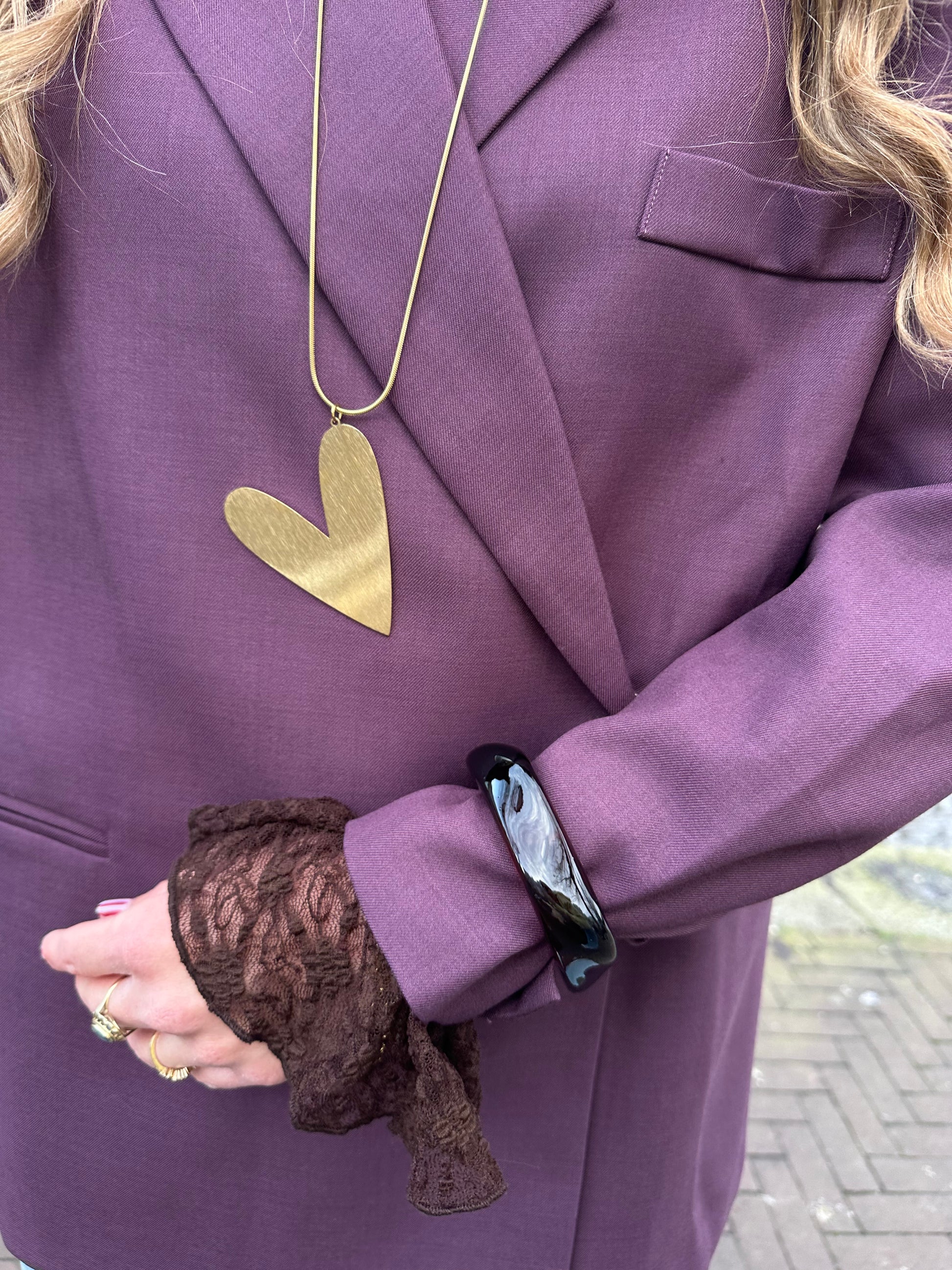 Lange kettingen zijn een musthave dit seizoen. Deze leuke goudkleurige ketting met een hart eraan past perfect bij iedere herfst en winter outfit. Of je hem nu wil dragen met verschillende andere kettingen of juist als statement ketting draagt. Maak van een basic jeans met sweater outfit meteen een persoonlijke look. Of voeg juist iets extra's toe voor een chic outfitje om naar een etentje of feestje aan te doen. Het fijne aan de ketting is dat deze niet verkleurd.