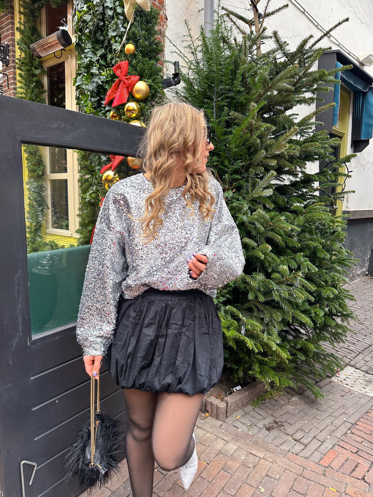 De musthave van niet alleen de zomer, maar ook de herfst is het bubble balloon rokje! Style met een t-shirt of met een sweater. Met laarzen of juist met loafers. De kleur zwart geeft het rokje een stoere touch. Het korte rokje is dubbel gevoerd om het extra volume te geven. Tip: stoom het rokje om het volume extra te laten poppen.