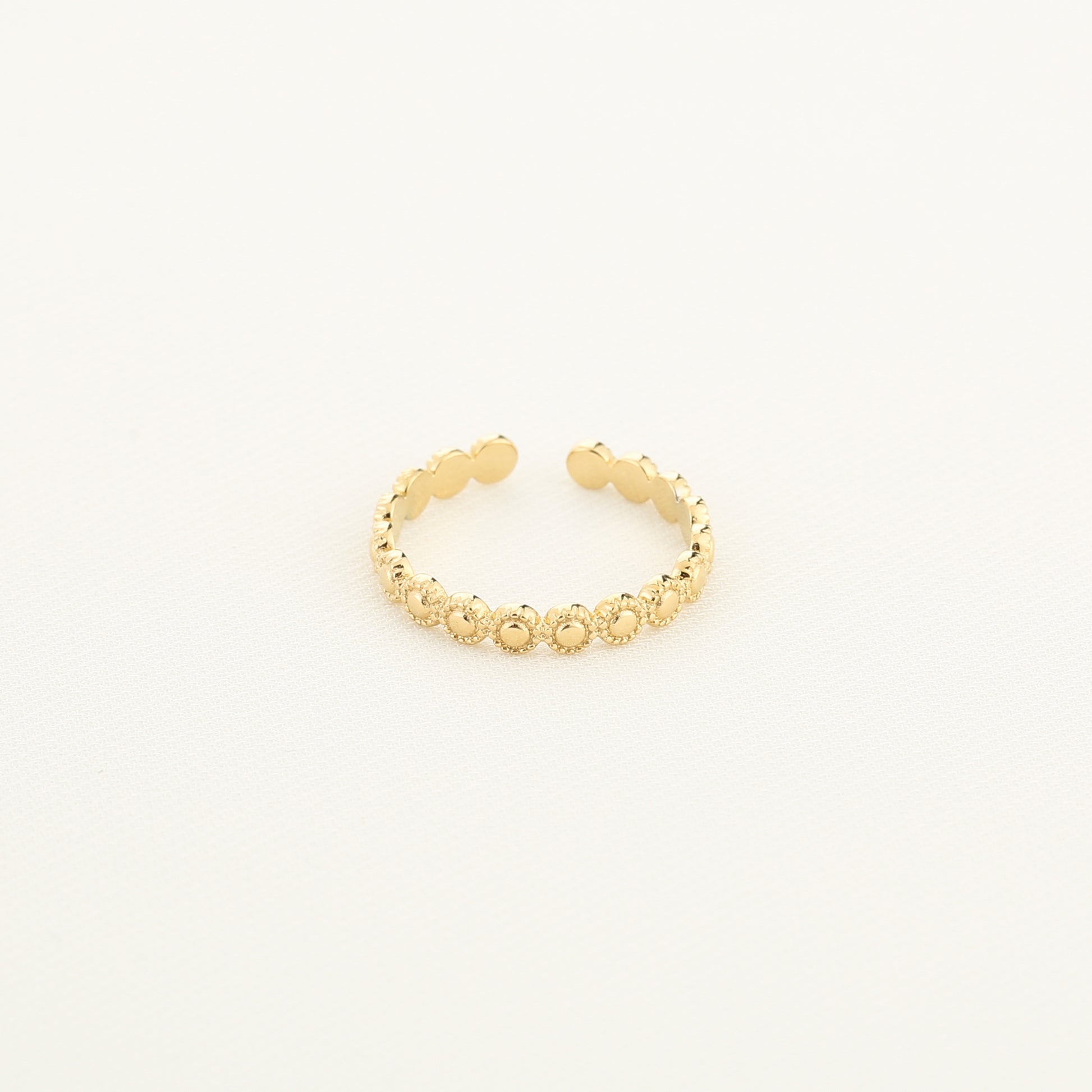 Deze vintage look gouden ring heeft kleine zonnetjes. De ring is perfect te combineren met andere minimalistische ringen voor de ideale ringstack.