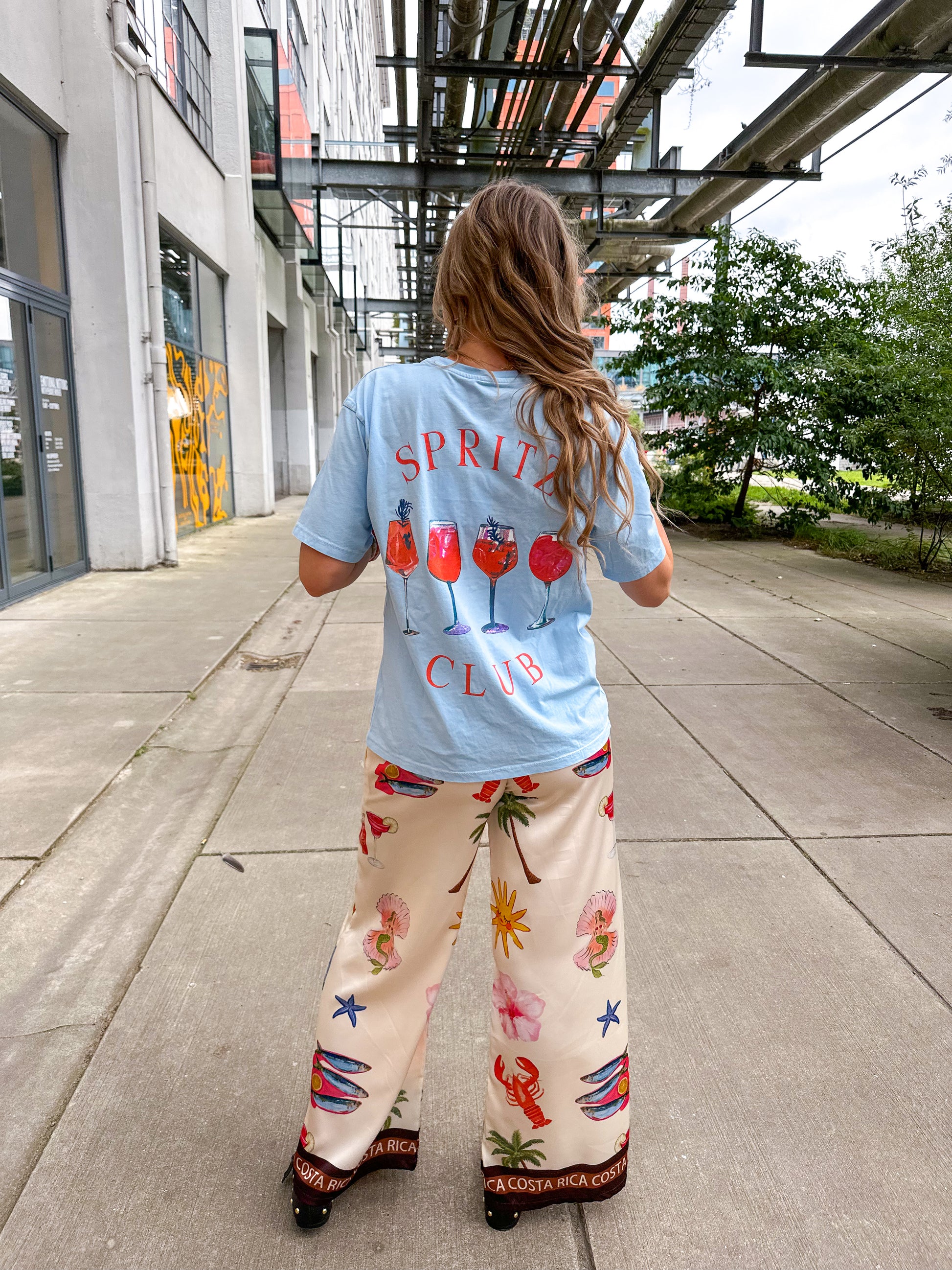 Grafische t-shirts zijn helemaal on trend en wij begrijpen wel waarom. Dit zomerse shirt met spritz cocktail opdruk is eindeloos te combineren voor leuke zomerse outfits. De licht blauwe kleur geeft een zachte uitstraling.