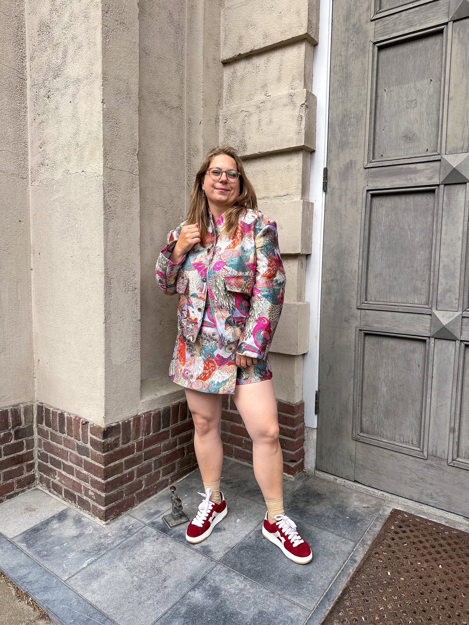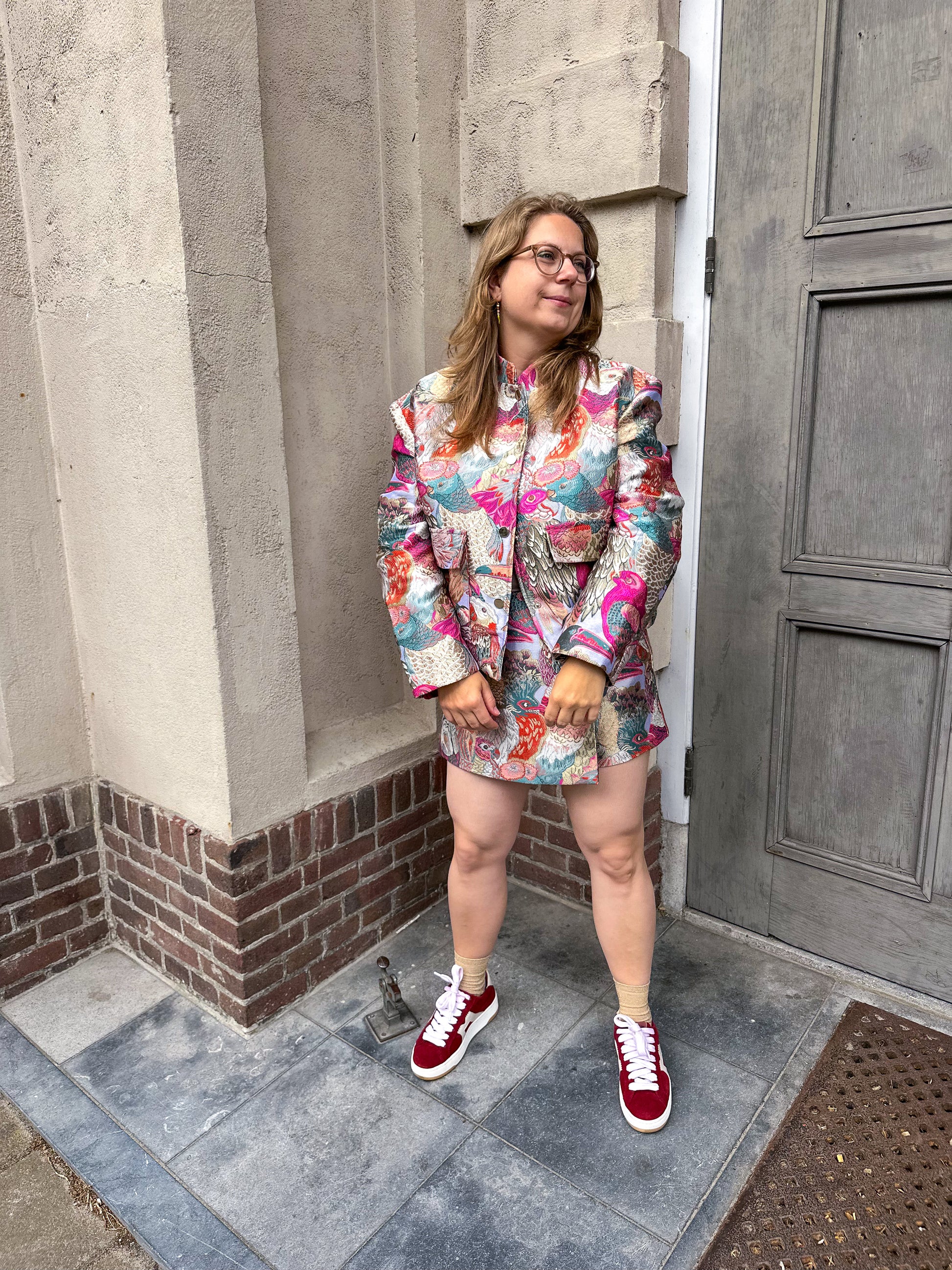 Sanne is 1.71 en draagt maat S/M, Linsy is 1.58 en draagt ook maat S/M.