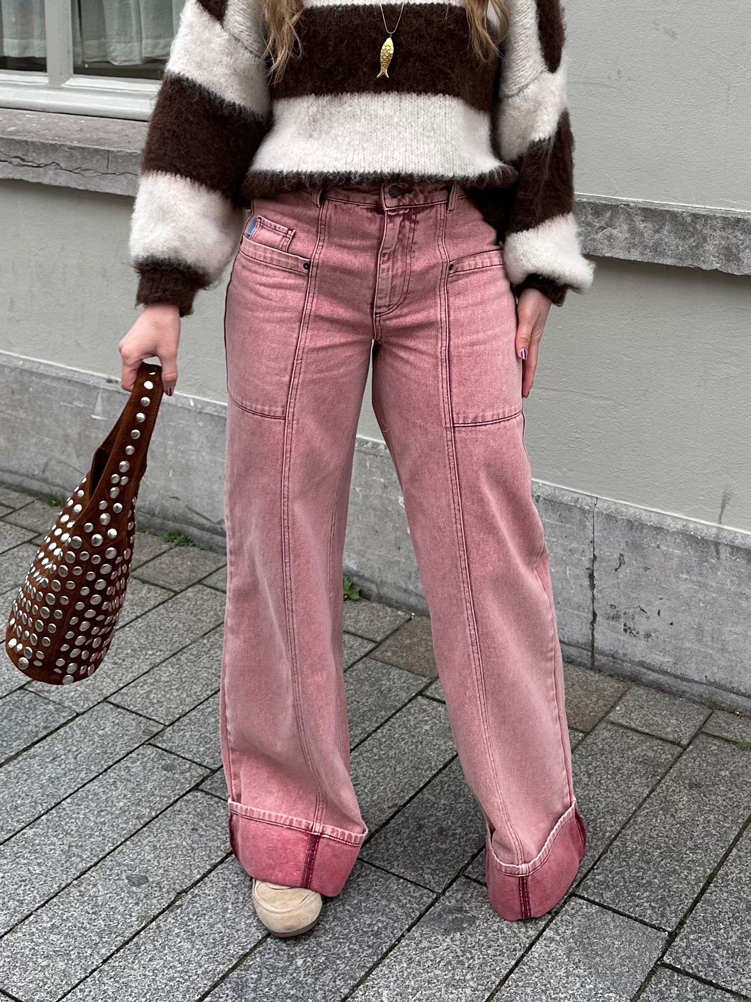 🌶️ Zacht roze broek met grote zakken en omgeslagen pijpen.