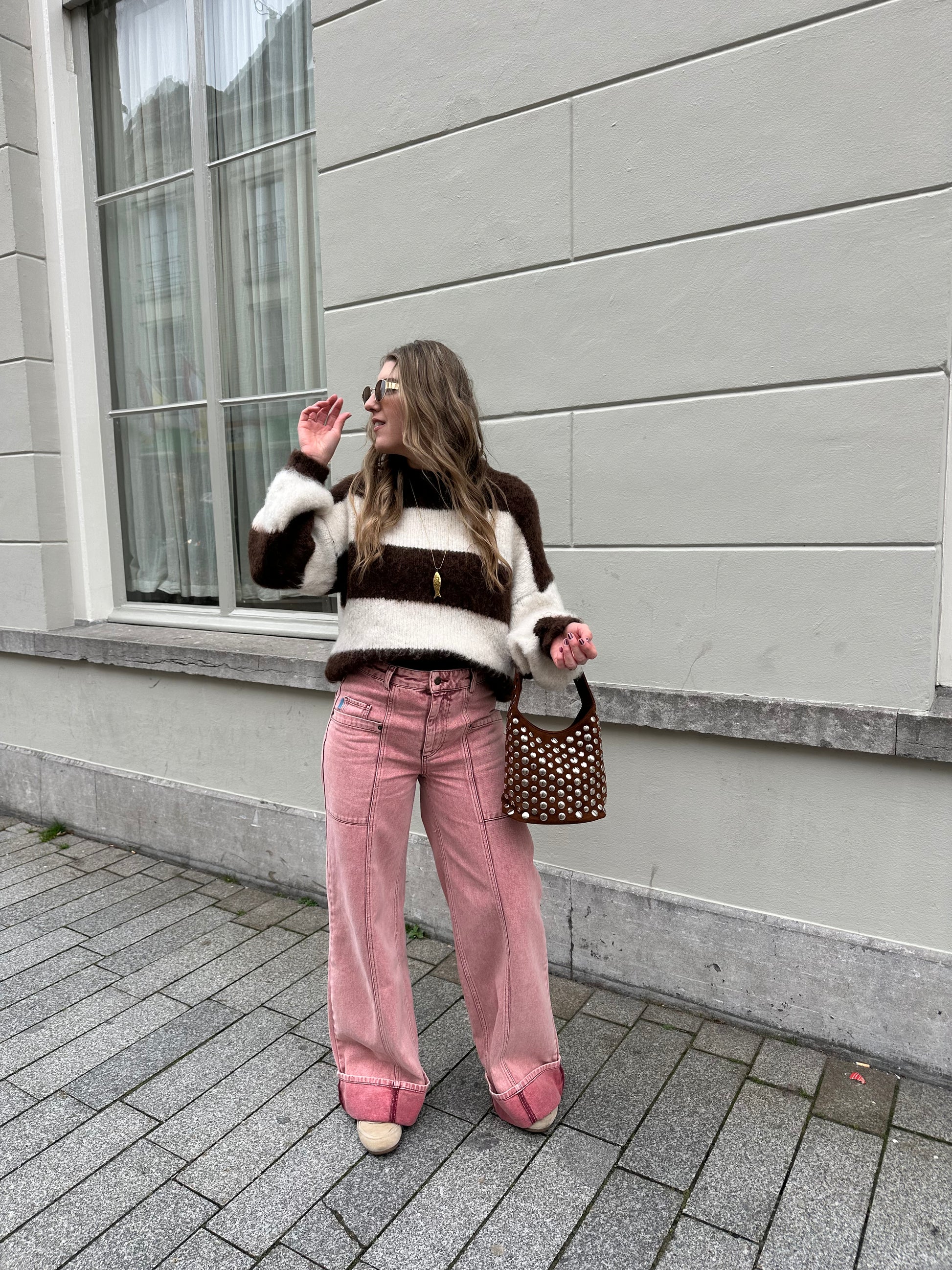 Deze zachte fluffy knit heeft de perfecte chocolade bruine kleur met beige brede strepen. De Laura trui valt oversized. Naast comfy is de knitted trui perfect iedere dag te dragen of je nu voor een office look gaat in combinatie met een mooie pantalon of voor een lunch date met vriendinnen draag je deze op je favo jeans. Deze zachte trui wordt jou nieuwe go to outfit.