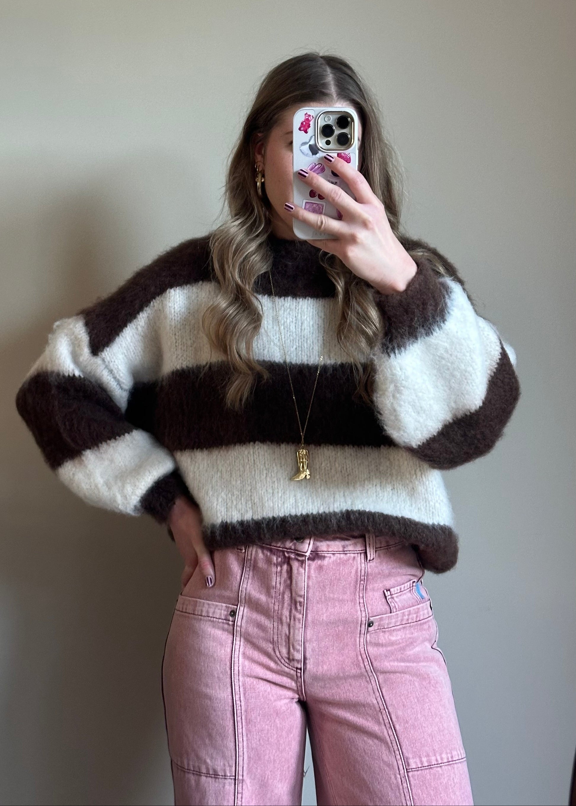 Laura gestreepte trui choco